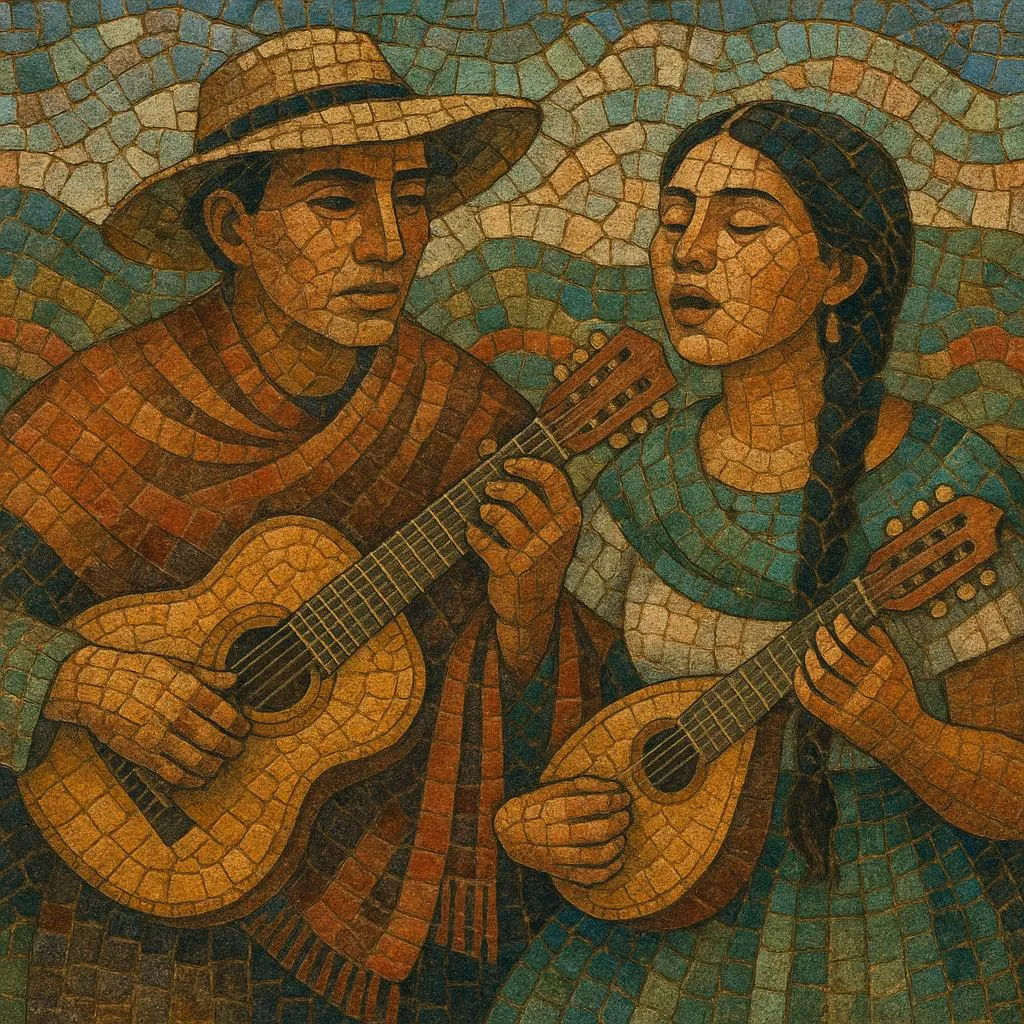 Typically performed by string ensembles featuring the Colombian tiple, bandola andina, guitar, and sometimes requinto or double bass, it interweaves salon-era European harmony with indigenous rhythmic cells and Afro-Colombian syncopation. Vocals often appear in duos with close, expressive harmonies and poetic lyrics that range from serenades and laments to festive dances.