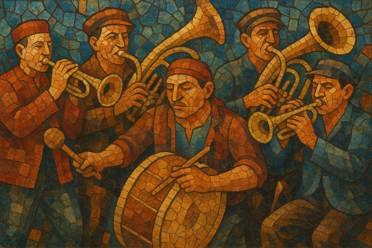 By the late 19th and early 20th centuries, Romani ensembles cemented the idiom heard at weddings and village gatherings. Dance forms like čoček (often in 2/4 with off‑beat accents) and regional kolos coexisted with asymmetrical “aksak” meters (7/8, 9/8, 11/8), while modal language reflected Ottoman/Turkish and local folk scales. The tuba or helicon anchored bass ostinatos, freeing trumpets to deliver rapid, ornamented melodies and call‑and‑response riffs.