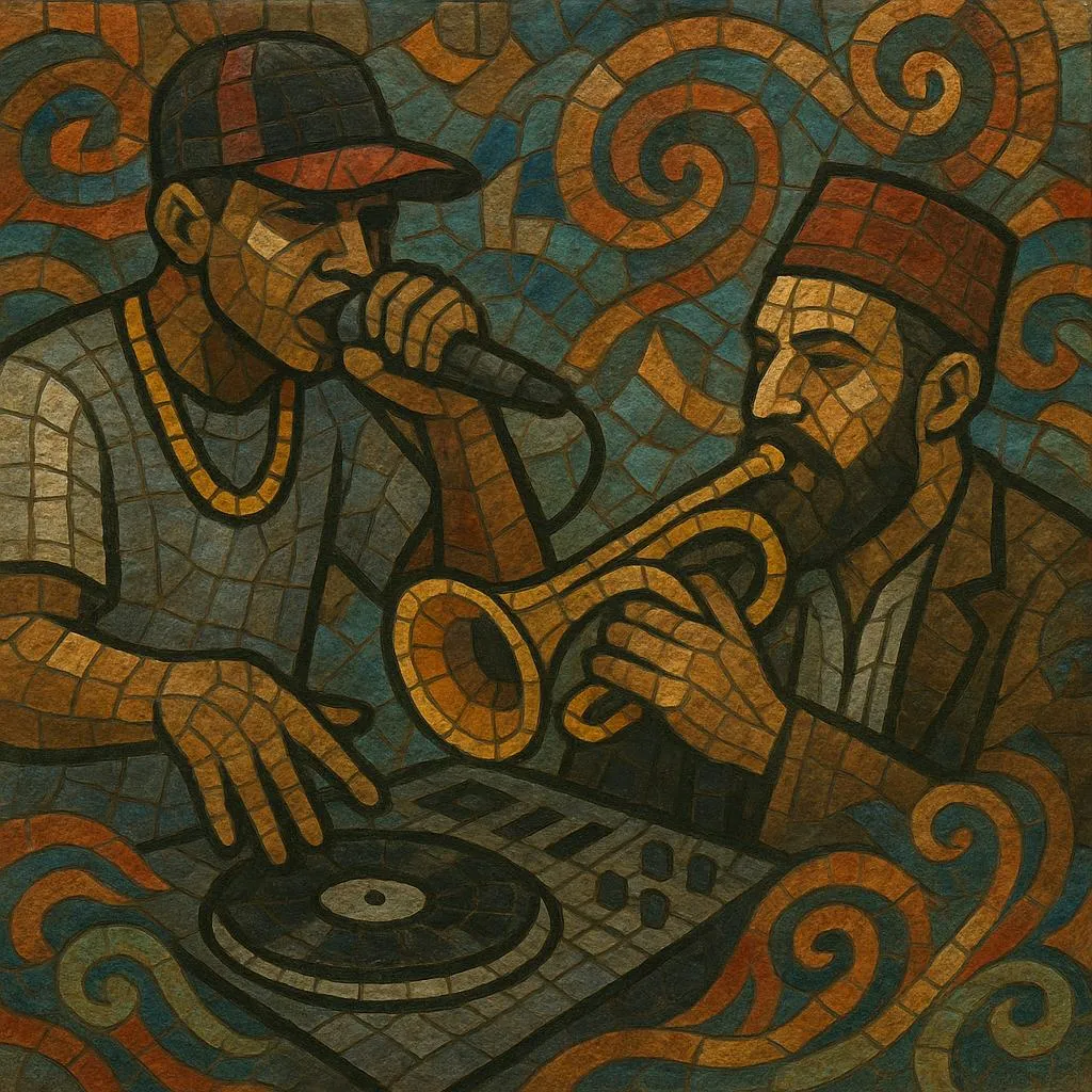 Balkan hip hop is the regional form of hip hop that developed across the countries of the Balkans, fusing classic rap aesthetics with local folk melodies, brass-band energy, and distinctive asymmetrical rhythms (such as 7/8 or 9/8). It keeps the core elements of MCing, DJing/production, and sampling, while embracing instruments and scales familiar to Southeastern Europe.