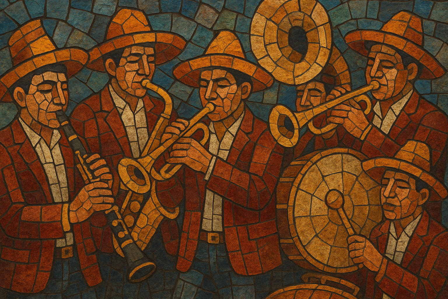 Their repertoire blends European dance forms such as polka, waltz, schottische, and pasodoble with Mexican song forms like rancheras and corridos, alongside cumbias and contemporary pop arrangements. While closely related to the better-known Banda sinaloense, the term "bandas de viento" also encompasses rich town-band traditions across states like Oaxaca, Puebla, Zacatecas, and Jalisco. The sound is powerful, festive, and highly danceable, with unison clarinet lines, bright trumpet harmonies, and the tuba’s characteristic oom-pah pulse driving the groove.
