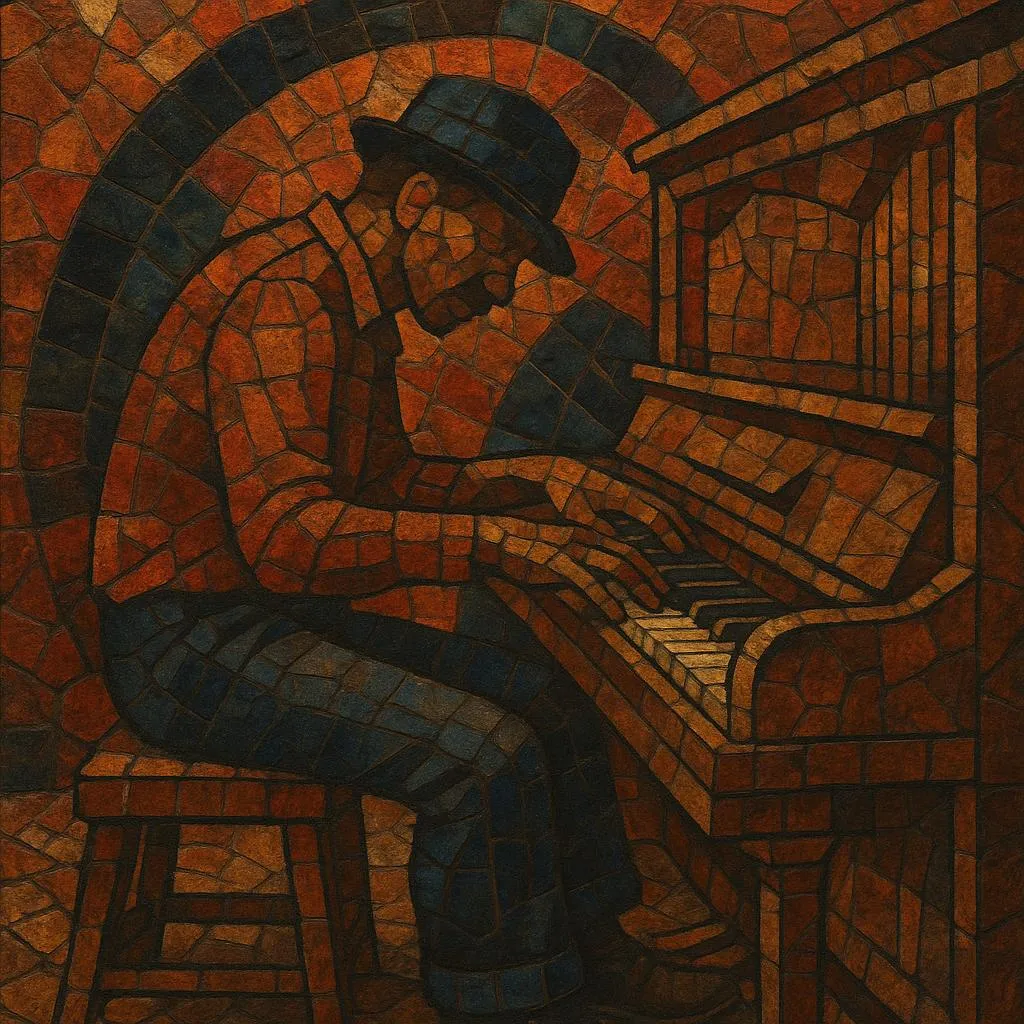 Technically, the left hand lays down a pounding, train‑like beat (walking figures, repeated basses, and chordal stomps) while the right hand spins syncopated melodies and riffs; many performers eschewed pedal use entirely to keep the attack crisp and loud. The style emerged alongside ragtime but leaned far more toward blues feel and groove, and it became an acknowledged precursor to boogie‑woogie and later dance‑oriented blues.