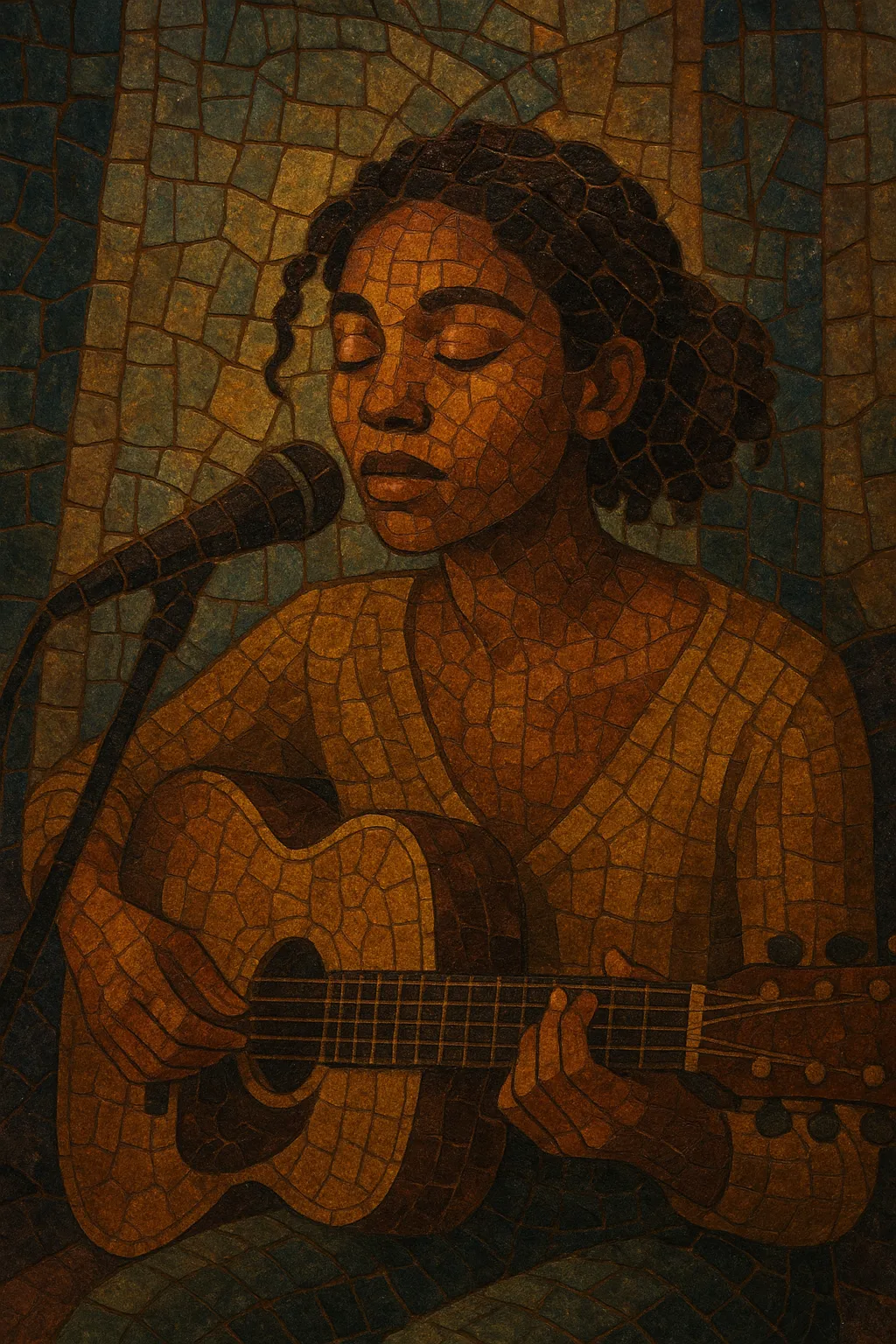 Production is intentionally unvarnished—subtle tape hiss, vinyl crackle, softly clipped transients, and gentle saturation are embraced to create a lived‑in texture. Electric guitar or Rhodes/soft‑synth keys carry lush seventh‑chord progressions, pocketed bass lines, and minimalist drums with swung hi‑hats and rimshots. Lyrics are inward‑looking and conversational, often exploring romance, self‑discovery, and late‑night reflection.