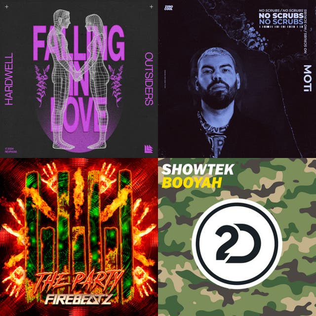 A defining trait is the contrast between cinematic, reverb-washed breakdowns and ultra-dry, percussive drops driven by a powerful kick, sub, and a few bold supersaw or horn-like synth stabs. Arrangements lean on dramatic builds with snare rolls, risers, and crowd-hyping vocal chops, culminating in drops that emphasize impact over harmonic complexity.