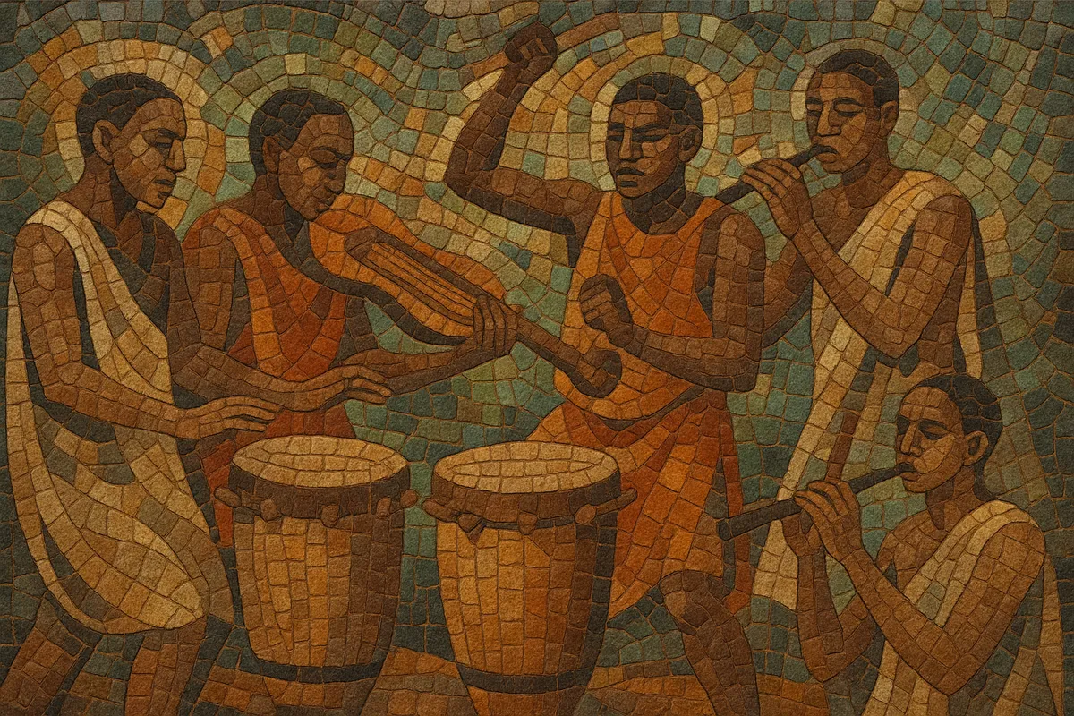 Historically tied to kingship, harvest rites, and communal celebrations, the style blends music, dance, and pageantry. It is both a ritual medium and a virtuosic performance art, prized for its collective energy, dramatic dynamics, and deep cultural symbolism.