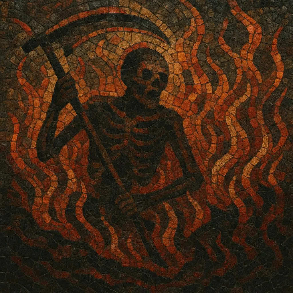 Compared to conventional blackened death, charred death leans further into murk, reverb, and saturation, often blurring note edges into a hostile, ember‑glow mass. Tempos whip between blast‑beat conflagrations and heaving, doom‑streaked lurches; harmonically, tritones, chromatic cells, and dissonant clusters dominate. The result is music that sounds burned to the core—ritualistic, hostile, and engulfed in atmosphere.