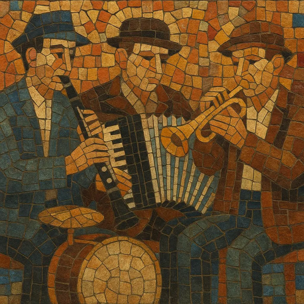 Typical ensembles feature melody and counter-melody traded between clarinet and trumpet, with the concertina providing the signature rhythmic pulse and chordal support, often alongside drums and bass.