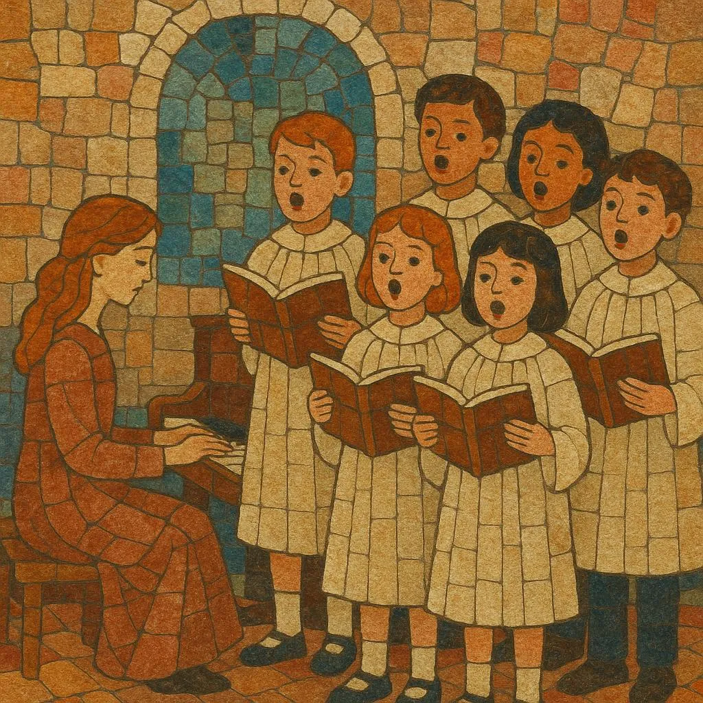 Children's choir is a choral tradition featuring treble voices (typically ages 6–18) singing in unison or multi-part harmony (SA, SSA, or SSAA), often accompanied by piano, organ, or small orchestra.