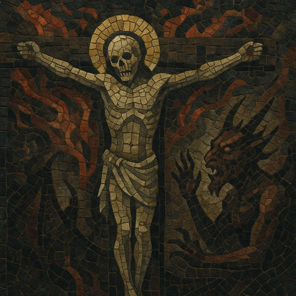 Musically, it is typically indistinguishable from secular death metal: songs employ chromatic and modal riffing (often Phrygian/Phrygian dominant and harmonic minor), sudden tempo shifts between blasts and half‑time lurches, and dense, high‑gain production. What sets it apart is the text and imagery, which explore biblical narratives, sin and redemption, eschatology, spiritual warfare, and ethical self‑examination, sometimes mirroring death metal’s dark iconography as a foil to articulate hope, judgment, or transcendence.
