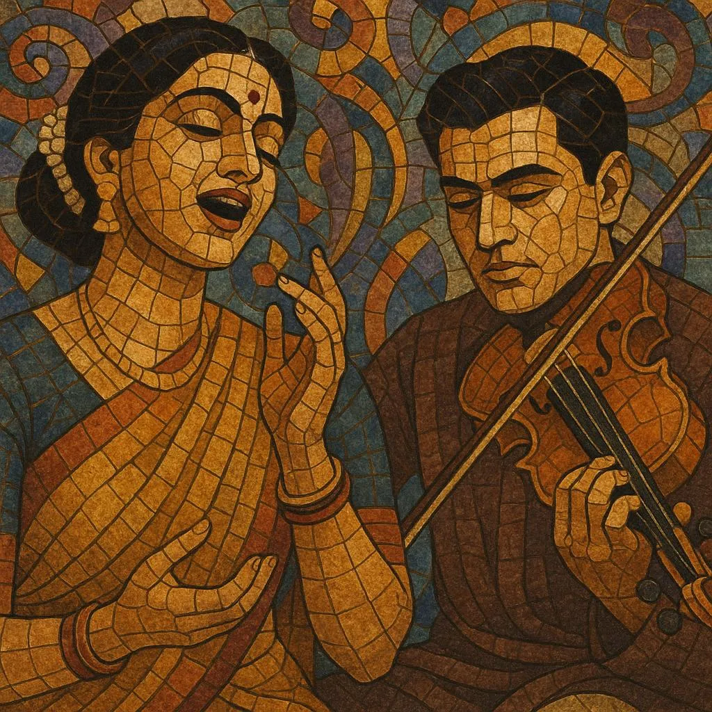 It blends raga-based melodies from Carnatic and Hindustani traditions with popular song forms, devotional idioms, and lush, often Western-influenced orchestration. Songs typically feature soaring playback vocals, memorable leitmotifs, and rich string and woodwind arrangements, while preserving Indian rhythmic cycles (talas) and raga grammar.