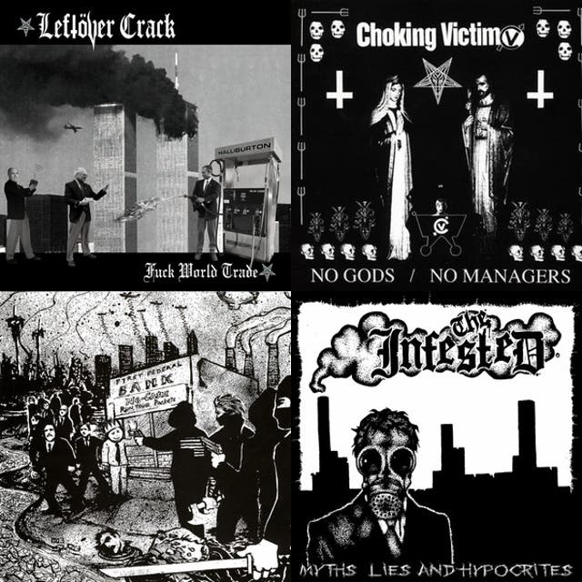 The term was popularized by Choking Victim, whose sole LP "No Gods/No Managers" (1999) became the blueprint: frantic d‑beat/hardcore passages collapse into grimy rocksteady interludes, all underpinned by anti‑authoritarian lyrics. After Choking Victim split, members formed Leftöver Crack, advancing the style on "Mediocre Generica" (2001) and "Fuck World Trade" (2004). These records codified the genre’s sound: breakneck tempos, gang vocals, metal‑edged riffing, street‑level ska breaks, and explicitly anarchist, anti‑capitalist themes.