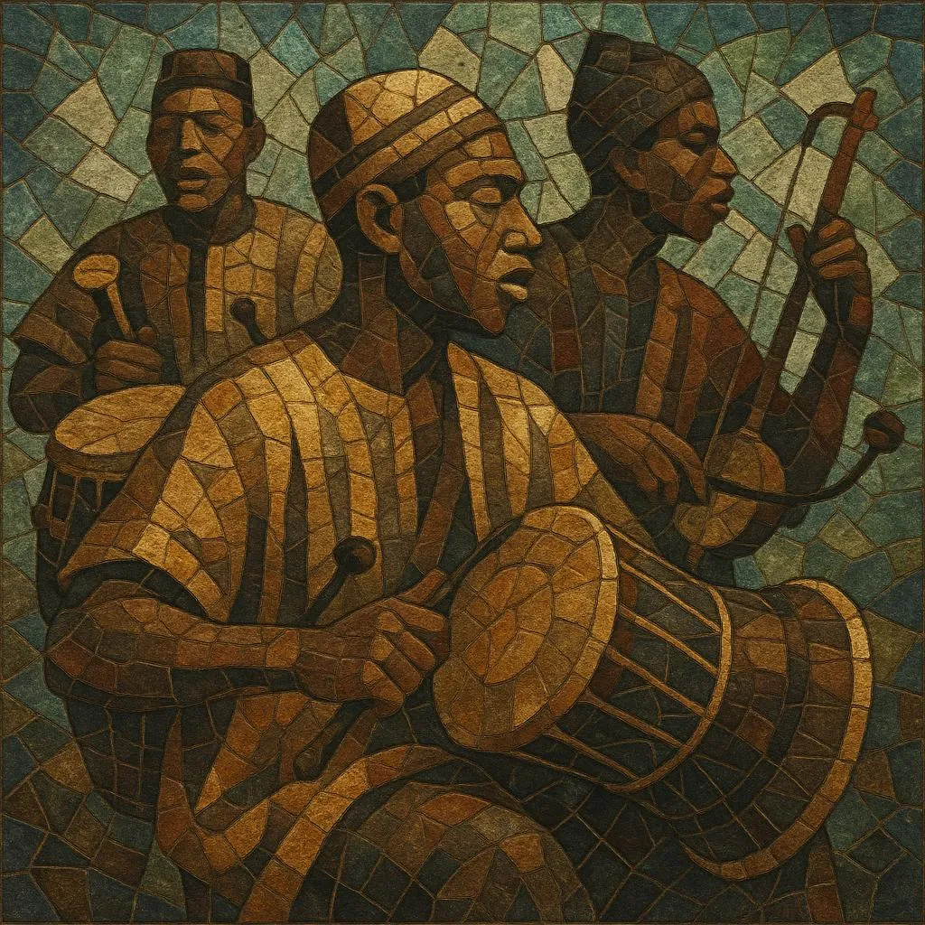 The musical tradition of the Dagbamba is tied to the Kingdom of Dagbon, which consolidated from the 15th–16th centuries. From early on, the lunsi were court functionaries—genealogists, diplomats, and master musicians—who safeguarded collective memory by “speaking” history on the talking drum. Their music developed within palace contexts (chief enskinments, processions, war/peace announcements) and in village life (naming ceremonies, funerals, communal dances).