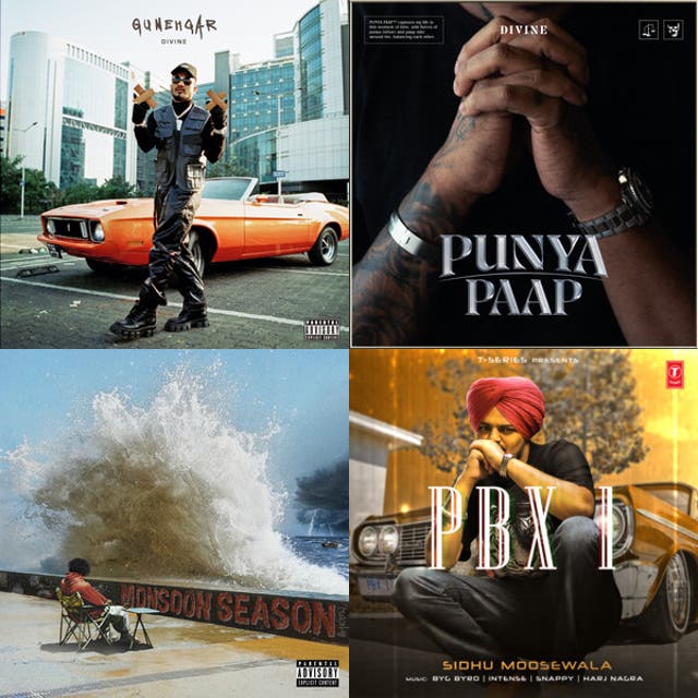 Lyrics commonly mix Hindi, Urdu, Punjabi, Bengali, Tamil, and English (often Hinglish), while production weaves boom-bap and trap with desi textures such as dhol and tumbi rhythms, Bollywood string motifs, qawwali/harmonium colors, and filmi vocal phrasing.