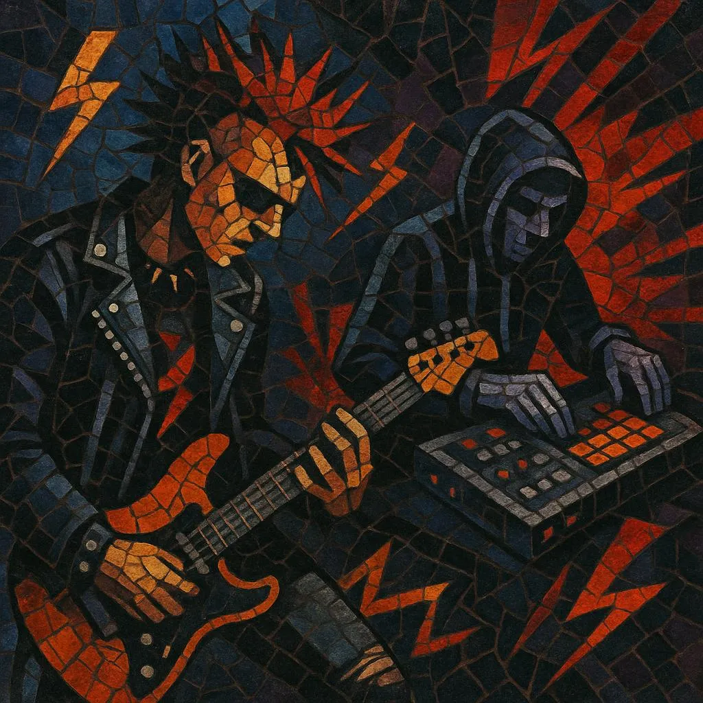 E‑punk (short for electronic punk) fuses the attitude, speed, and DIY ethos of punk with the timbres and sequencing of electronic music. It swaps or supplements a traditional drum kit and bass guitar with drum machines, samplers, and synths, yet keeps the barked vocals, anti‑authoritarian stance, and raw immediacy of punk.
