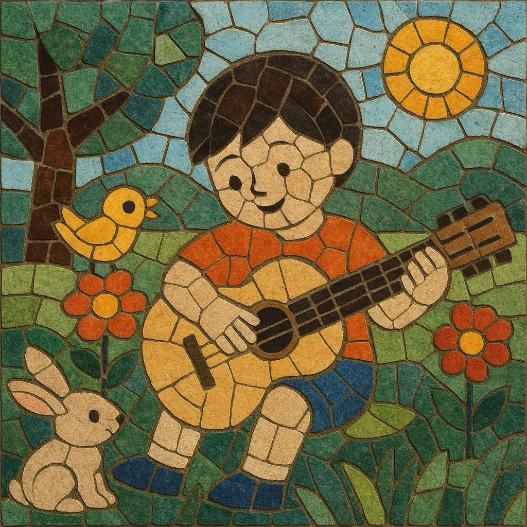 The style favors pentatonic, stepwise melodies, clear diction, repetition, and movement-friendly rhythms. Lyrics typically center on animals, nature, family life, etiquette, school, and playful imagination, often using onomatopoeia and call-and-response to engage children. Arrangements range from solo voice with piano or guitar to children’s choirs accompanied by Orff instruments, light Chinese folk timbres (dizi, erhu), and contemporary pop backings.