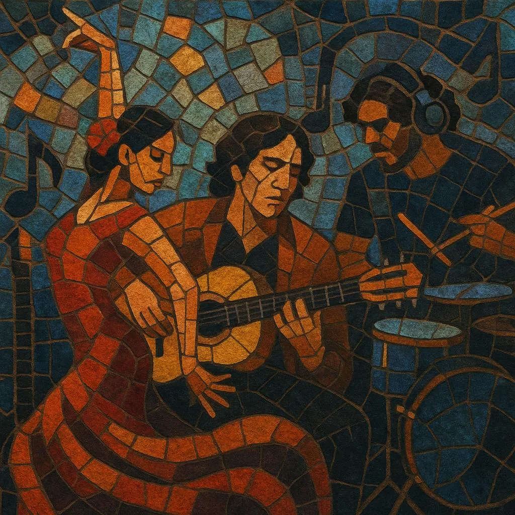 At its core are flamenco palos (forms) like bulería, tangos, soleá, and rumba, carried by compás (cyclical meters), palmas (handclaps), and cante (vocal melisma). In fusion settings these are combined with drum kits and bass grooves, jazz harmonies, rock guitars, electronic production, and even rap flows, expanding flamenco’s expressive palette while keeping the duende-driven intensity that defines it.