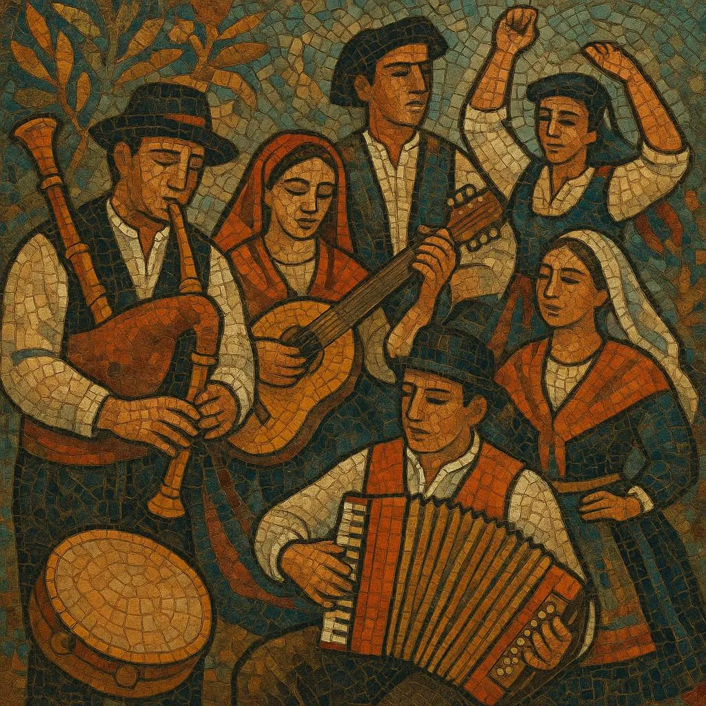 Folclore português (Portuguese folklore) is the umbrella term for Portugal’s regional folk music, songs, and dances as they are preserved, staged, and transmitted by community ensembles (ranchos folclóricos) and revival groups. It draws on centuries-old rural and maritime traditions and presents them in identifiable regional styles.