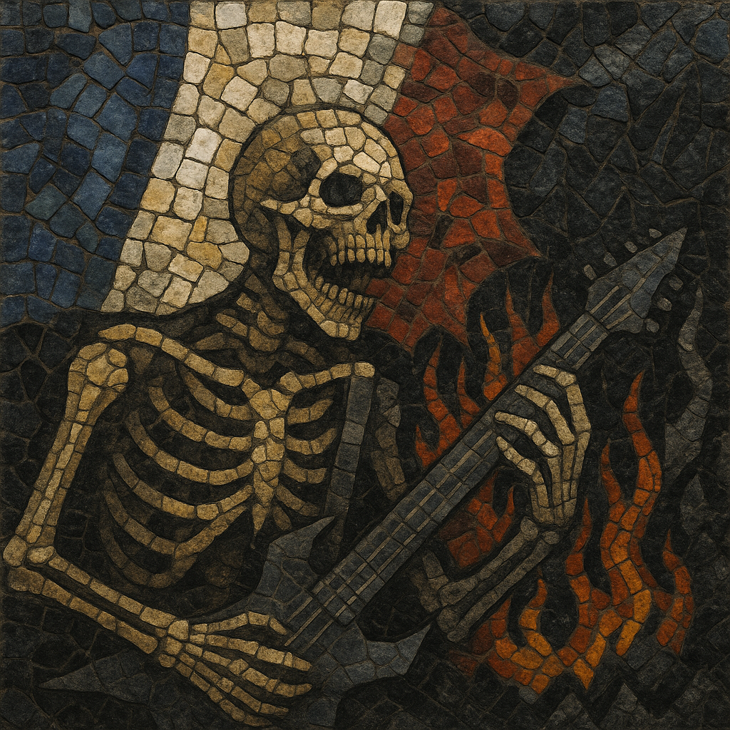 France’s death metal took shape as the country’s thrash underground darkened and intensified. Pioneers such as Loudblast, Massacra, Agressor, and Mercyless moved from high-speed thrash into a harsher, lower-tuned, blast-driven sound. Demos and split releases circulated through the European tape-trade network, helping establish a national identity that prized precision and ferocity.