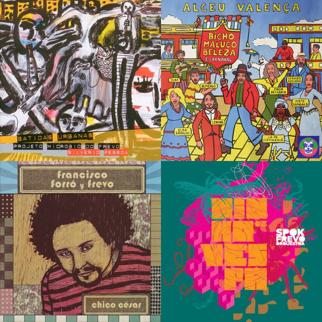 Frevo is a fast, brass-driven carnival music from Pernambuco, Brazil, especially associated with the cities of Recife and Olinda. It is characterized by dazzling, syncopated melodies, staccato horn lines, and relentless 2/4 rhythmic propulsion that inspires acrobatic dance steps performed by passistas with small, colorful umbrellas.