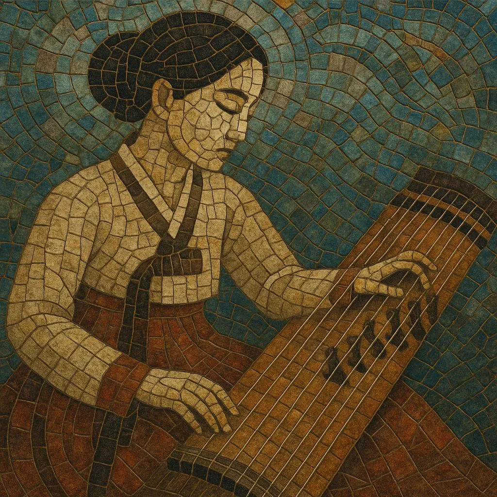 According to Korean historical tradition, the gayageum was devised by the musician Ureuk in the Gaya confederacy during the 6th century CE. The instrument and its repertory soon entered Silla and later courtly circles, where plucked-zither timbres became integral to ceremonial and refined entertainment music.