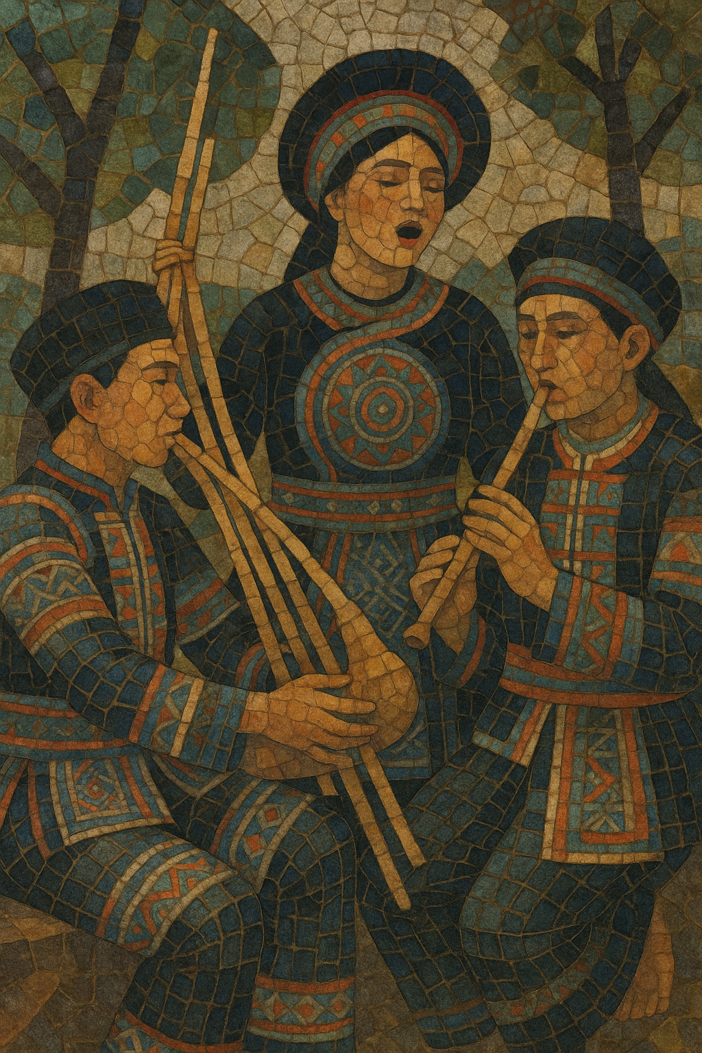 Core to the sound is the qeej (a multi-pipe free-reed bamboo instrument), whose melodies encode tones of the Hmong language to recite poetic texts, especially in funerary rites and ceremonial contexts. Vocal genres such as kwv txhiaj (improvised sung poetry) convey complex narratives, moral teachings, and personal sentiments with intricate melodic contours. Supporting instruments include the ncas (jaw’s harp), raj (flutes), and various drums and gongs.