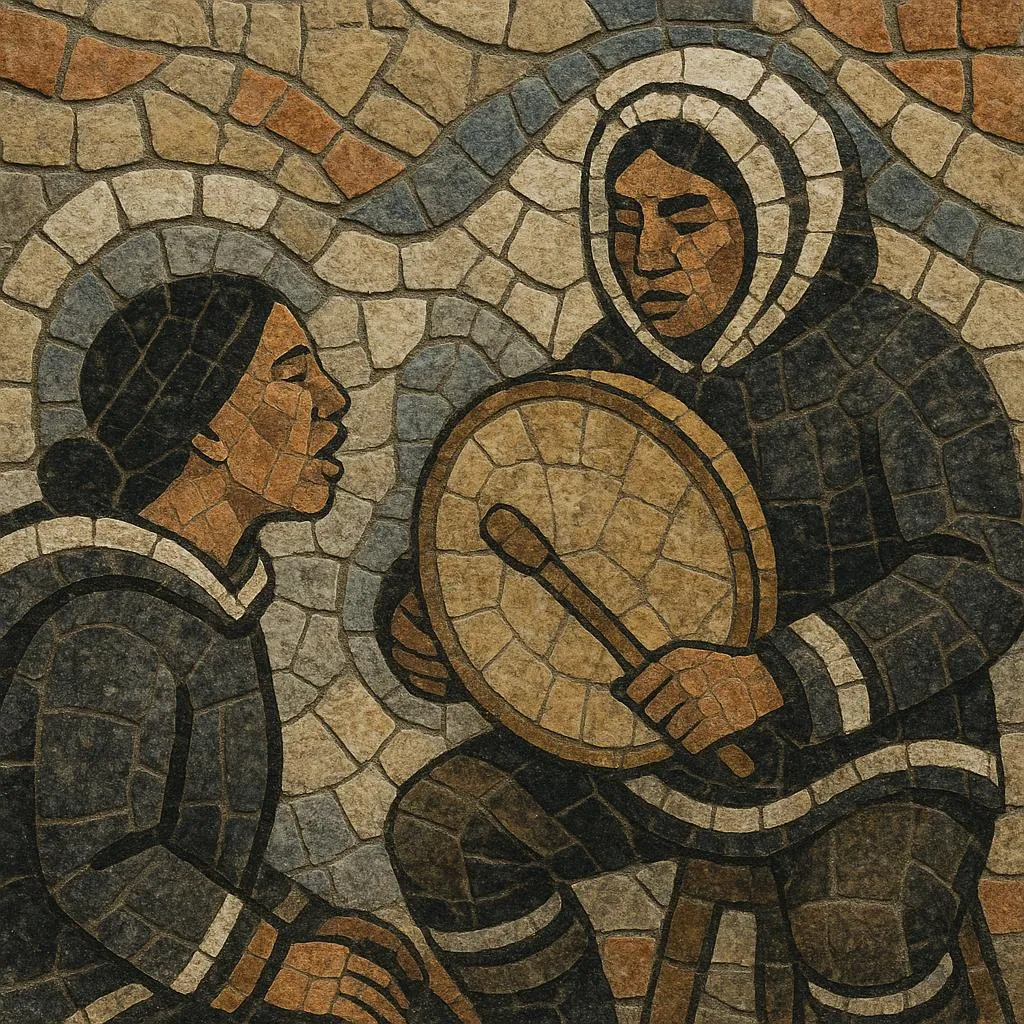 Inuit musical practices predate written history, emerging from subsistence lifeways and animist cosmology across the Arctic. Songs served practical and ceremonial roles: to welcome visitors, mock-play disputes, celebrate successful hunts, soothe infants, and accompany communal dance. The frame drum (qilaat/killaaq) and interlocking vocal games (throat-singing duets) formed core pillars of musical life.