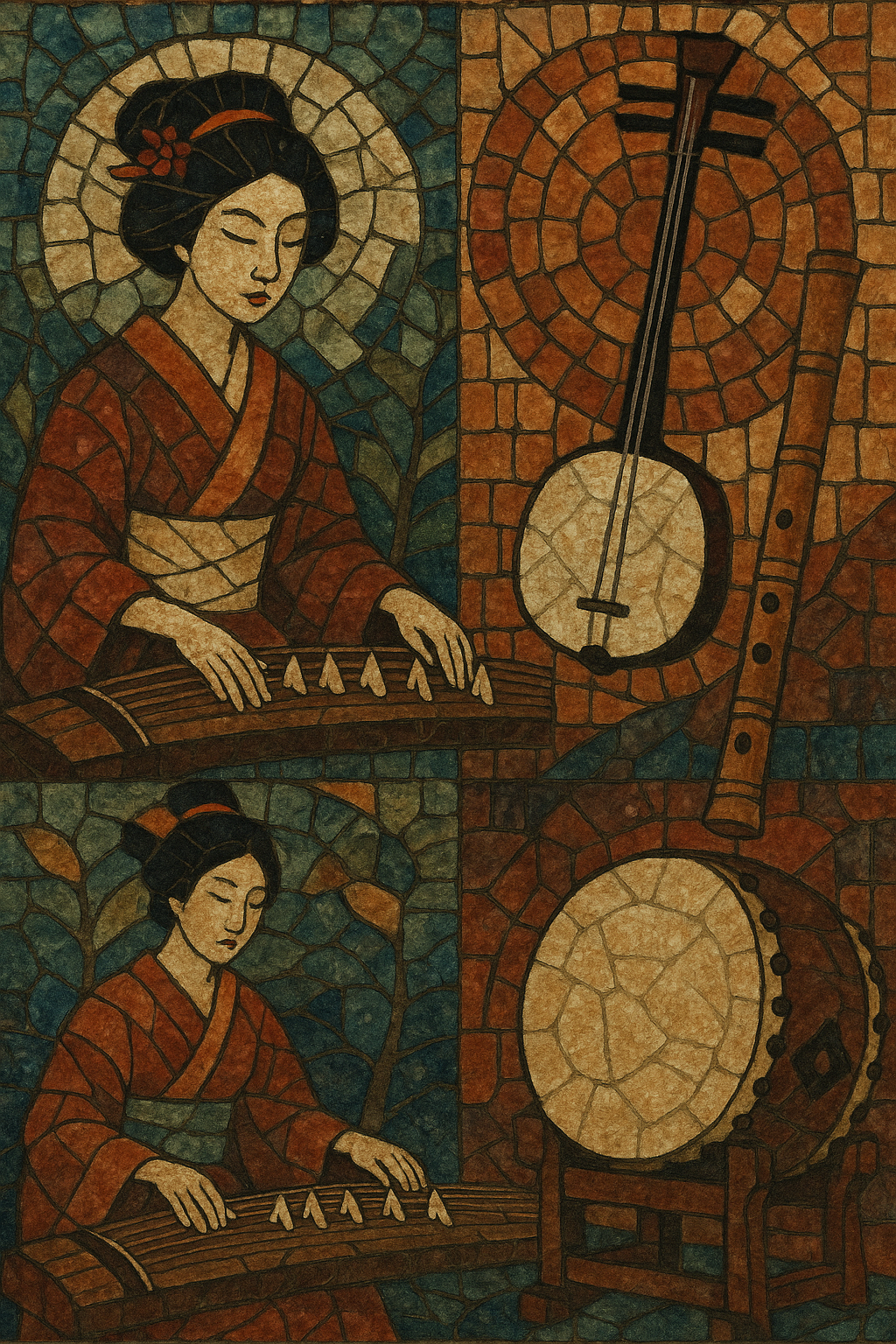Core traditional streams include gagaku (imperial court music), shōmyō (Buddhist chant), noh and kabuki theater music (e.g., nagauta), and min'yō (folk song). Instruments such as the koto, shamisen, shakuhachi, biwa, and various taiko drums shape its signature sound. Since the Meiji period, Western classical, band, jazz, rock, electronic, and hip-hop idioms have been localized into uniquely Japanese forms—from kayōkyoku and enka to city pop, J-pop, Vocaloid, and game/anime music.