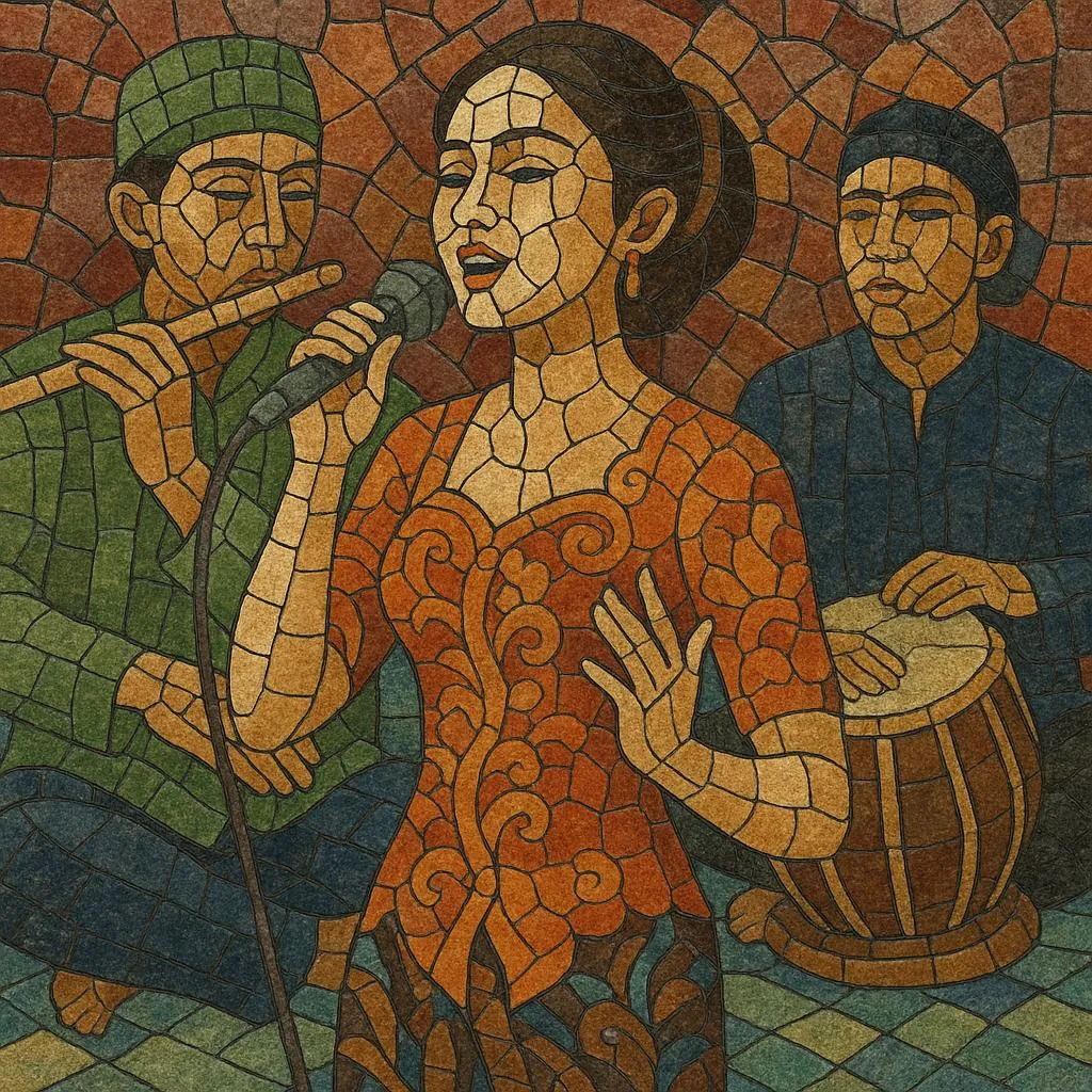 Dangdut emerged nationally in the 1970s as a hybrid of Indian filmi rhythms, Malay pop, and local orkes Melayu. In Java during the 1980s, singers and orkestrasi began delivering dangdut entirely in Javanese, adopting Javanese poetic diction and vocal cengkok. At the same time, Javanese idioms from langgam Jawa and keroncong—as well as the timbral memory of gamelan (pelog/slendro)—colored melodies and phrasing.