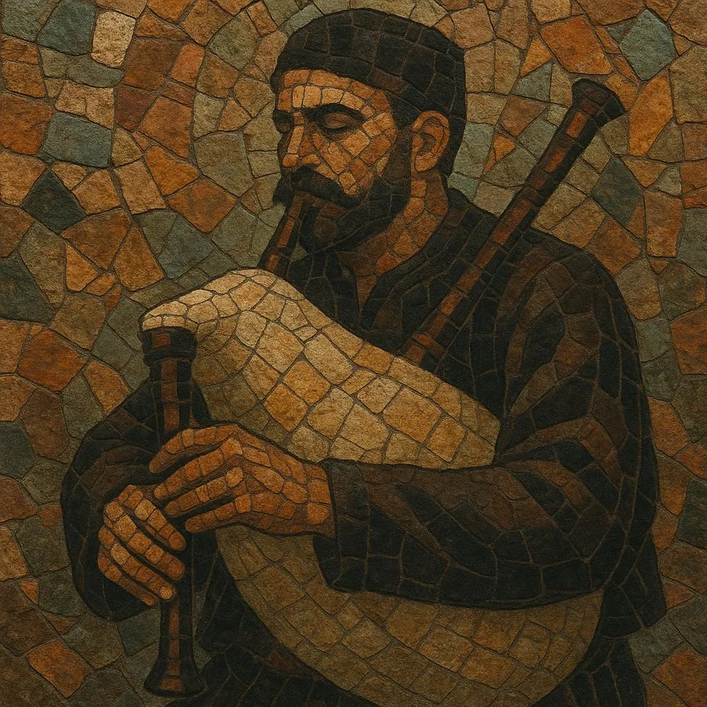 Played solo or in massed ensembles, the kaba gaida sustains a continuous tonic drone while the chanter renders long‑breathed, vocally inspired melodies rich in slides, grace‑notes, and micro‑inflections. Repertoires include slow, free‑rhythmic song melodies and dance tunes in both even and asymmetric meters. The instrument’s timbre and phrasing closely emulate the Rhodope singing style (“protiazhna pesen”), giving the music an expansive, melancholic and epic quality.
