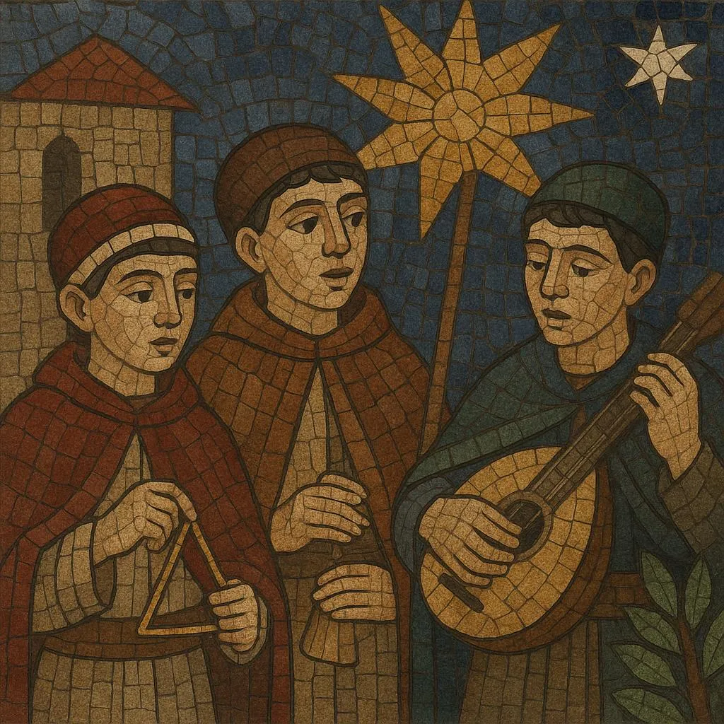 •Rhythm: Favor steady, march‑like pulses suitable for walking from house to house (2/4 or 4/4). Regional sets may use Greek folk meters (e.g., 7/8, 9/8) for local color. Keep phrasing short with refrain‑style endings.