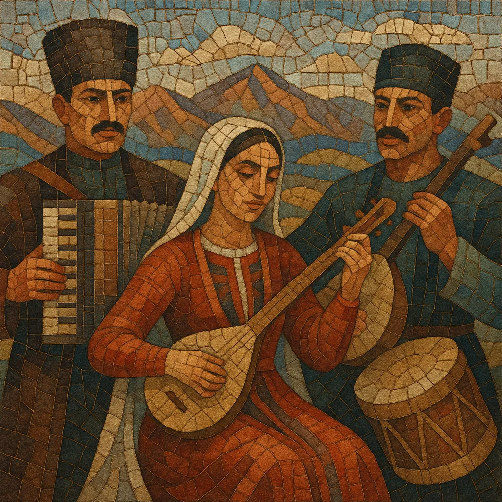Karachay-Balkarian music has deep roots in the North Caucasus, where epic storytelling, pastoral song, and communal dance long accompanied daily life and seasonal rituals. Epic and historical songs were carried by bard-like singers, while weddings and village gatherings favored vigorous circle and line dances supported by loud outdoor instruments such as zurna and drums.