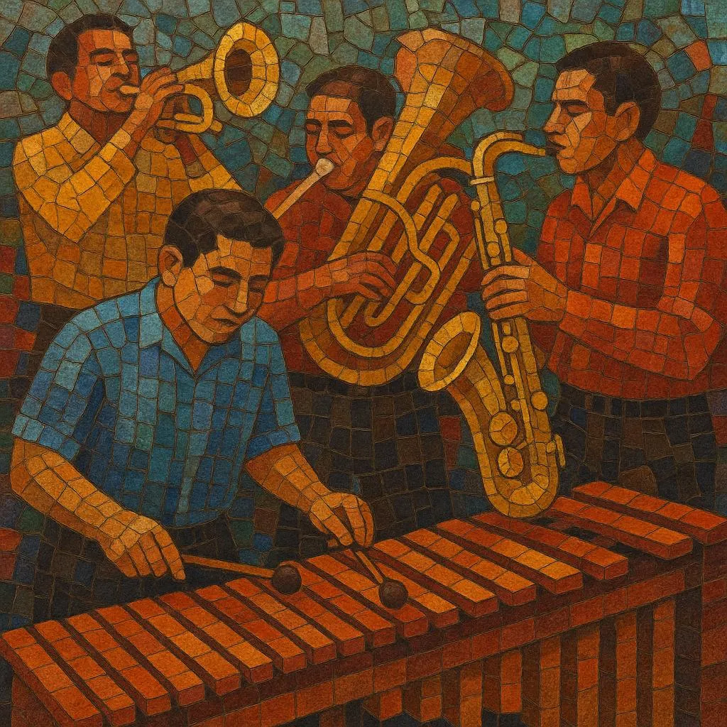 The roots lie in the evolution of the Guatemalan chromatic "marimba doble" and the growing popularity of public dance music. By the 1930s, marimba groups began expanding beyond all‑marimba lineups, adding bass, drum kit, and eventually horns and reeds. This created a regional counterpart to the urban Latin big band, but with the marimba as the melodic heart.