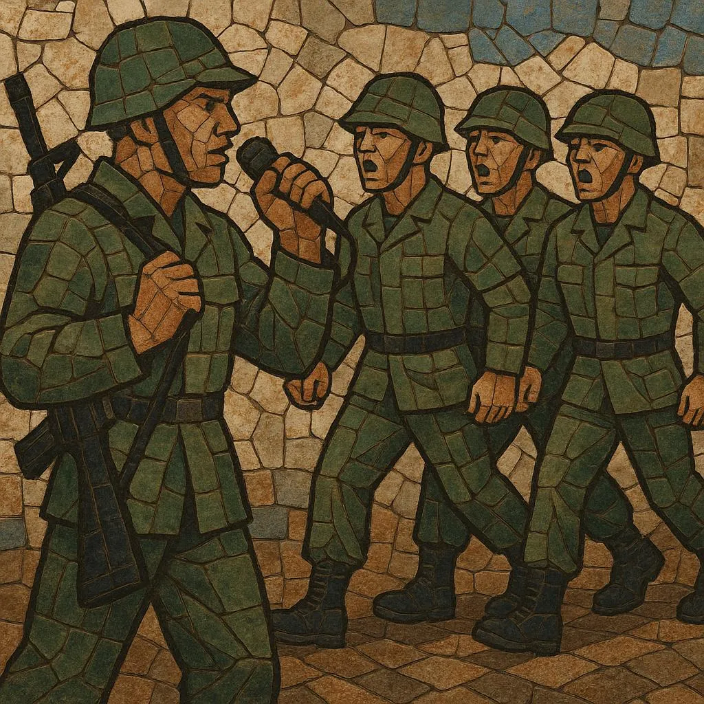 Military cadence grows from older work-song traditions where rhythm coordinates collective labor.