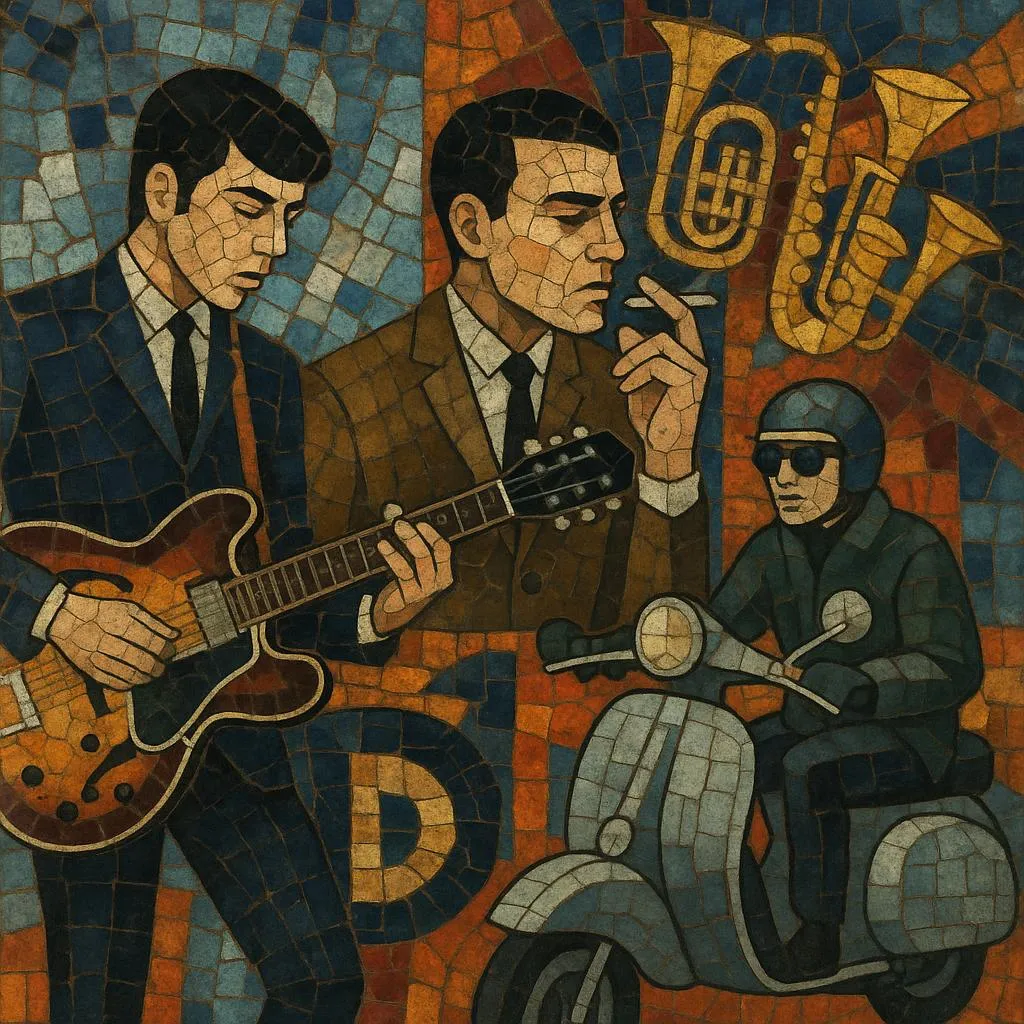 Typically built on tight backbeats, chiming or slightly overdriven guitars, punchy basslines, and soulful embellishments (Hammond organ, brass), it balances working‑class realism and nightlife romance with concise, sing‑along choruses. While it borrows the clean lines and scooter‑culture aesthetics of classic mod, its songwriting and production are informed by 1990s indie/Britpop and 2000s UK indie rock, giving it a crisp, modern sheen.