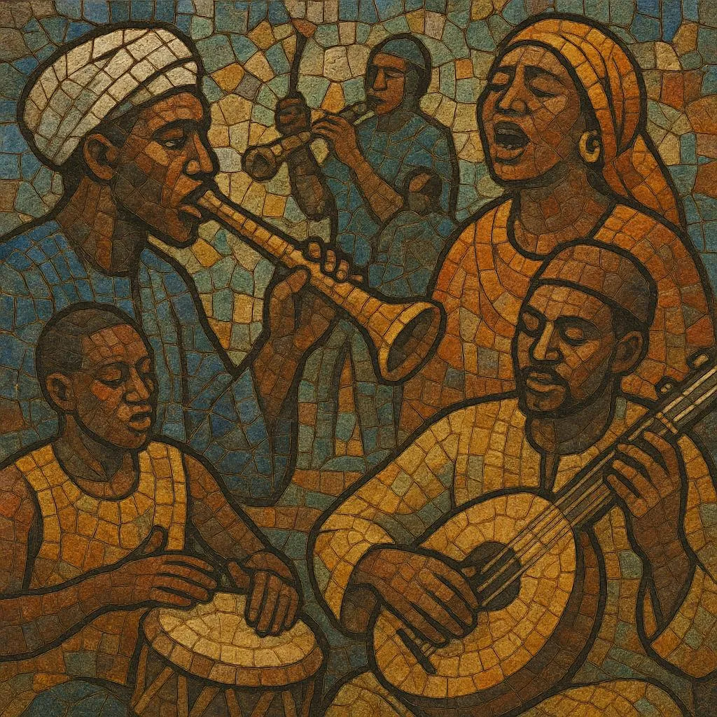 Chad’s musical ecology long predates the modern state. Court and ritual contexts in the north and east used horn-and-trumpet ensembles—most famously the waza/kakaki—for processions, coronations, and elite ceremonies shared across the Chad–Sudan cultural sphere. In the south and center, Sara, Ngambaye, and related communities cultivated polyrhythmic drumming, xylophone (balafon) repertoires, and call-and-response singing for agricultural rites, weddings, and storytelling. Griot (jali) traditions with five‑string kinde and other lutes preserved genealogies and oral histories, while Fulani single‑reed flutes and Tibesti lute/fiddle (spike-lute and one‑string bowed fiddles) anchored nomadic and oasis music.