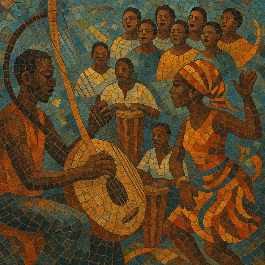 Traditional repertoires center on the Fang mvet (a harp‑zither used by bardic storytellers), antiphonal choral singing, handclapping, slit drums, and polyrhythmic dance music. On the islands, Bubi polyphonic chorus traditions and Annobonese Creole songs (linked culturally to São Tomé/Portuguese Atlantic) are common.