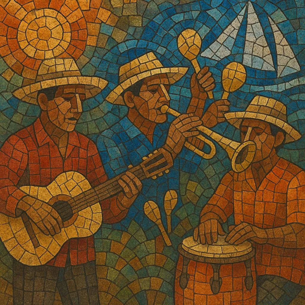 Typically performed by orquestas tropicales and brass-driven dance bands, the style features trumpets and saxophones over a percussion core (timbales, congas, güiro, maracas), bass, guitar or baby bass, and often keyboards or accordion. The repertoire moves fluidly from elegant danzones and romantic boleros to upbeat cumbias and carnival anthems associated with Campeche’s coastal festivities. Lyrics frequently reference seafaring life, plazas, carnival, love, and everyday stories from the Gulf coast, and may include peninsular turns of phrase alongside standard Mexican Spanish.