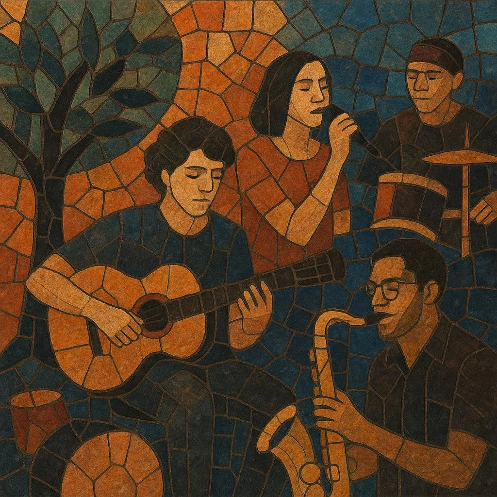 •Harmony & melody: MPB and jazz harmony (extended chords, modal color) frequently meet rock and indie structures (verse–chorus, bridges with dynamic lifts). Acoustic guitars often carry MPB or folk progressions; electric guitars add post‑punk/shoegaze textures with chorus, delay, and reverb.