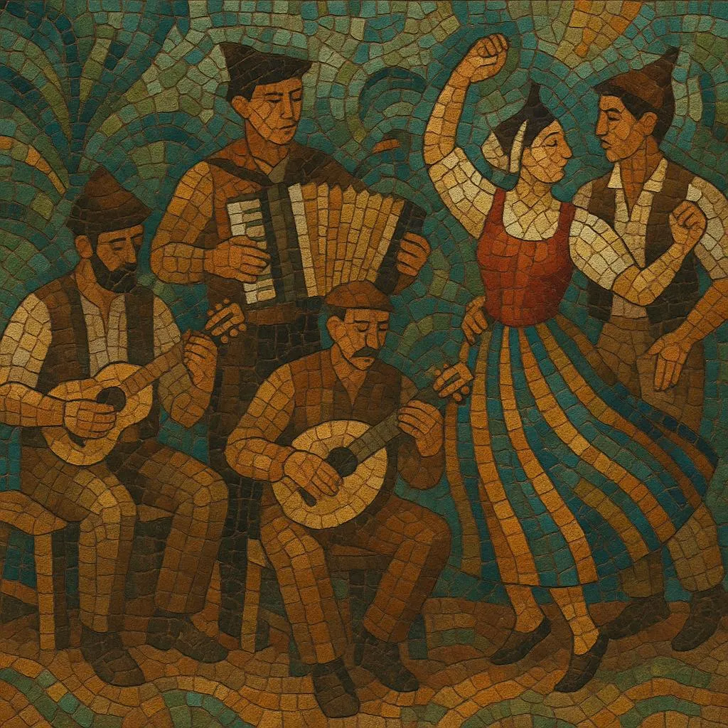 At its core are lively circle- and pair-dances (such as the Bailinho, Mourisca, and Charamba), call-and-response singing, and bright string timbres from unique local chordophones—the braguinha (also called machete) and the five‑string rajão—often supported by viola de arame, guitar, accordion, and distinctive local percussion like the brinquinho. Lyrics frequently celebrate romarias (saints’ festivals), agricultural cycles, seafaring, love, and emigration, delivered in accessible stanzaic forms.