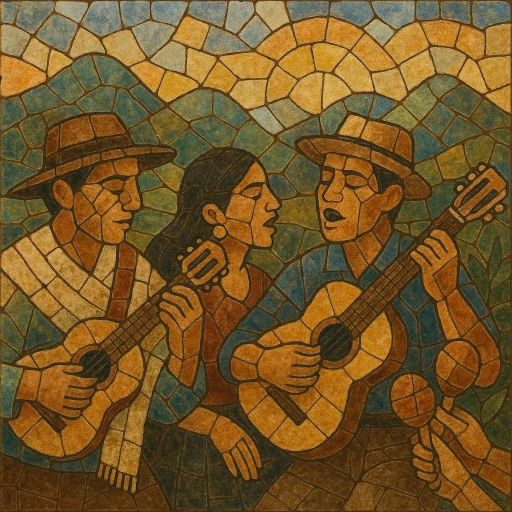 Radio, municipal bands, and estudiantinas in Tolima and Huila helped stabilize common keys, ensemble roles (bandola lead, tiple harmonic engine, guitar bass and cadence), and a fast, buoyant approach to dance numbers. Local composers and duos codified humorous coplas and sentimental verses about rural courtship, harvests, mountain life, and patron-saint festivities.