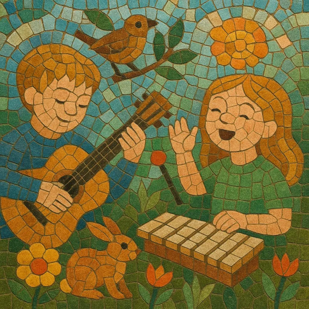Arrangements often feature acoustic guitars, piano, hand percussion, Orff-style classroom instruments (xylophone, metallophone, glockenspiel), and children's choirs. Lyrics focus on everyday adventures, nature, animals, humor, and social-emotional learning, with plenty of rhyme, repetition, and call-and-response to invite movement and singing along.
