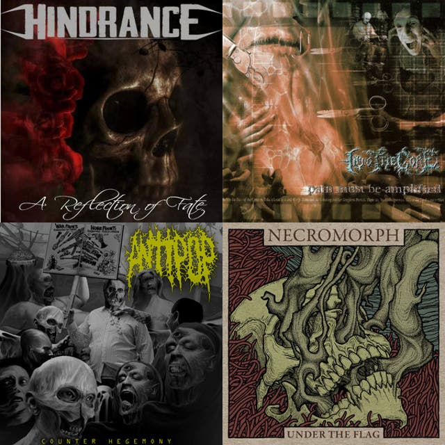 In the 2000s, bands across Europe and North America began tagging their most decomposed, gore‑leaning grind as “necrogrind.” The term distinguished records that were not merely fast and brutal but intentionally skeletal in mix—drums pushed to clipping, guitars rasping in the upper mids, bass either over‑fuzzed or nearly inaudible, and vocals reduced to inhuman gurgles or insectile shrieks. Internet forums, netlabels, and small DIY imprints amplified the tag, and split EPs helped cross‑pollinate regional scenes.