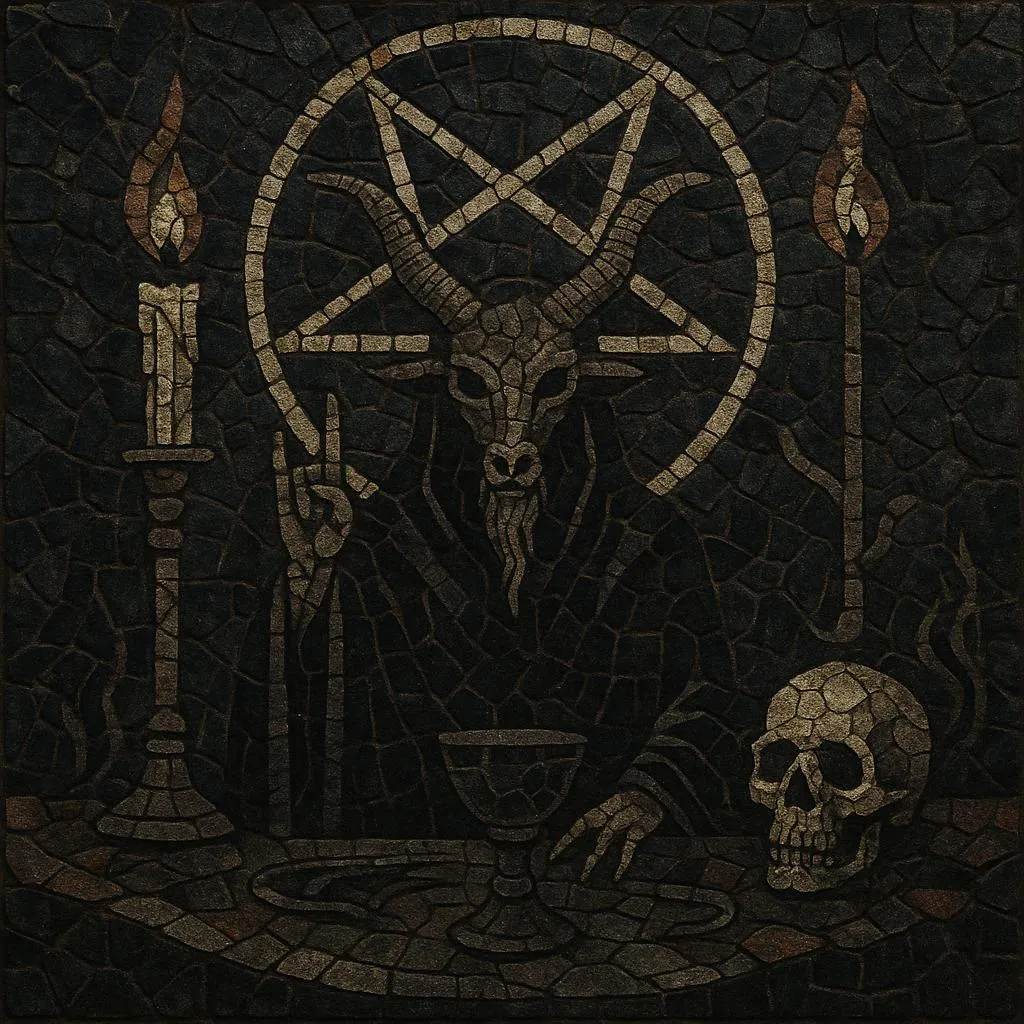 Musically, it spans from mid‑tempo, processional grooves to frenzied blasts, often weaving in drones, church bells, choral or chant-like passages, pipe organ or harmonium timbres, and ritual percussion. Harmonically it favors minor modes, tritones, and dissonances that evoke a sense of forbidden knowledge. The production typically embraces cavernous space and analog grit, amplifying the genre’s sepulchral, incense-filled aura.