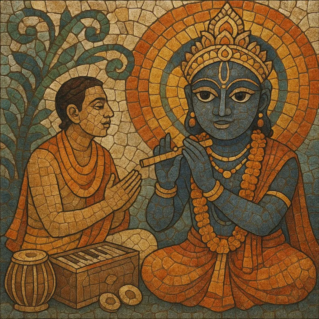 It centers on heartfelt praise of deities—especially Lord Jagannath (a form of Krishna), as well as Vishnu, Krishna, Rama, Shiva, and Devi—and is sung in temples, satsangs, akhadas, homes, and community gatherings. Musically, it draws from Odissi classical music and the wider Hindustani rāga vocabulary while retaining simple, singable melodies suited to congregational participation. Typical accompaniments include harmonium, mardala or pakhāwaj/khol (barrel drums), manjira/karatāla (small hand cymbals), and occasionally bansuri (flute) or violin.