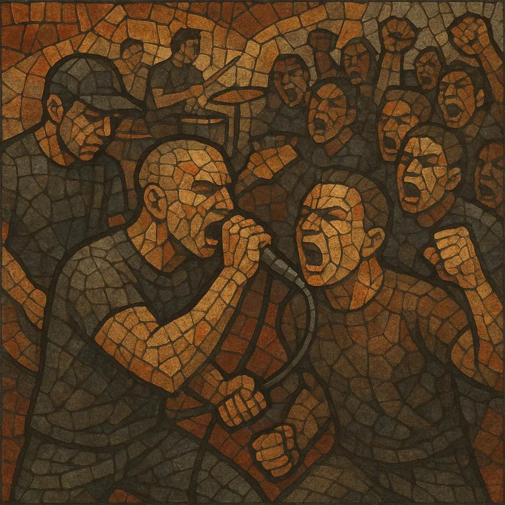 The scene is known for DIY ethics (VFW hall shows, zines, small labels), a raw yet muscular guitar tone, barked or shouted vocals, and tight arrangements that swing between D‑beat bursts, mid‑tempo two‑step, and breakdowns. Lyrically it ranges from personal struggle and scene politics to social critique, delivered with a communal, sing‑along intensity.
