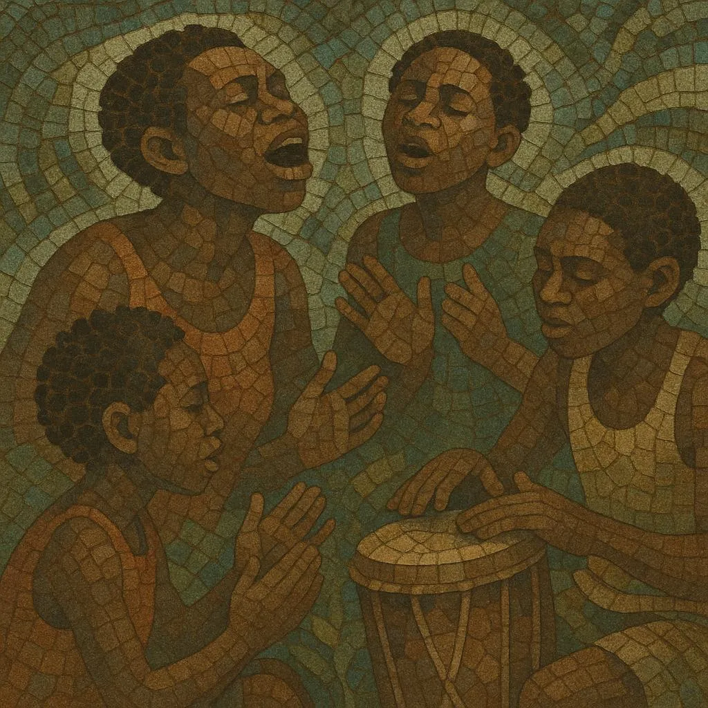 It is renowned for its dense interlocking vocal parts (hocketing), yodel techniques that alternate chest and head registers, ostinatos that cycle in complex meters, and communal participation in ceremonies connected to hunting, honey-gathering, initiation, healing, and daily life. Texts often mix meaningful words with vocables, and percussion is typically body-based (handclaps, stomps) or uses simple idiophones, with the forest itself treated as a sonic partner.