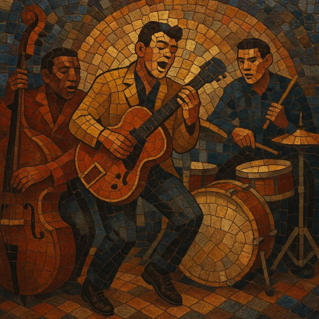 Developing in the United States during the mid‑1950s, the style carried boogie‑woogie's piano‑born groove onto guitars, doghouse bass, and drum kits, while borrowing R&B’s vocal phrasing and horn‑band punch. Its feel sits right on the seam that would soon open into early rock and roll and rockabilly.