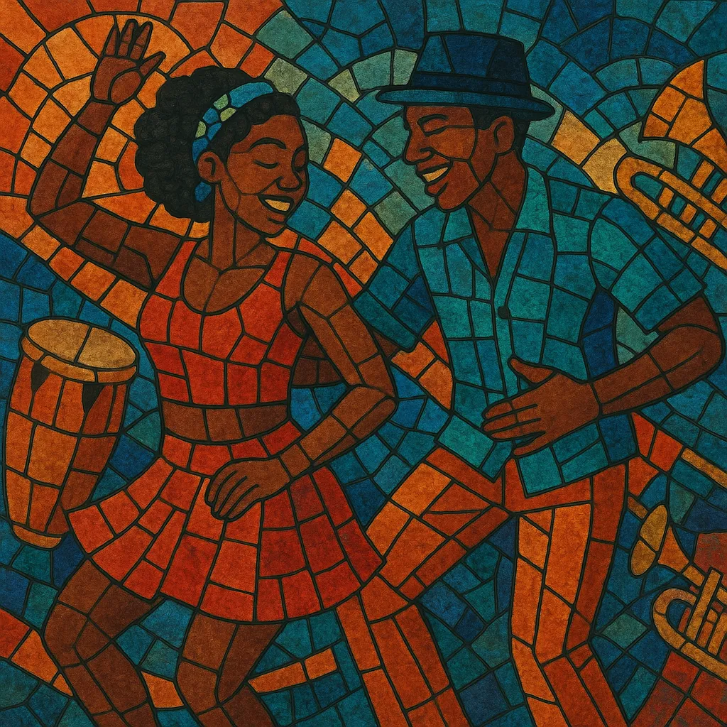 Built for parties, street dance “choques” (dance-offs), and stadium chants, it typically features looped salsa piano montunos, bright brass stabs, and crowd-style choruses over a big, syncopated reggaeton kick–snare pattern. Compared with classic salsa, its harmony is simpler and more repetitive, while the percussion and bass are heavier and electronic, giving it a distinctly modern club edge.
