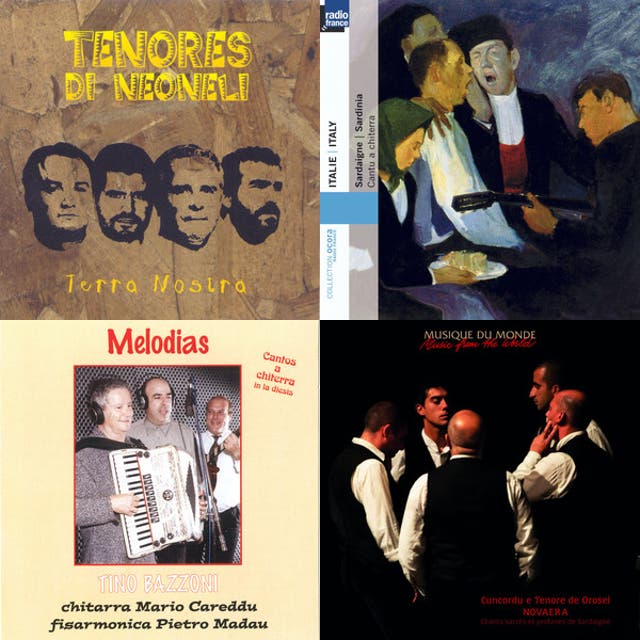 Its best-known vocal form is cantu a tenore, a four-part, overtone-rich male polyphony featuring the parts bassu, contra, mesu 'oche, and 'oche (solo), now recognized by UNESCO as Intangible Cultural Heritage. Equally prominent are devotional and paraliturgical songs (gosos/cuncordu), improvised poetic forms (mutetu), lament songs (attitu), and the guitar-accompanied cantu a chitarra/chiterra.