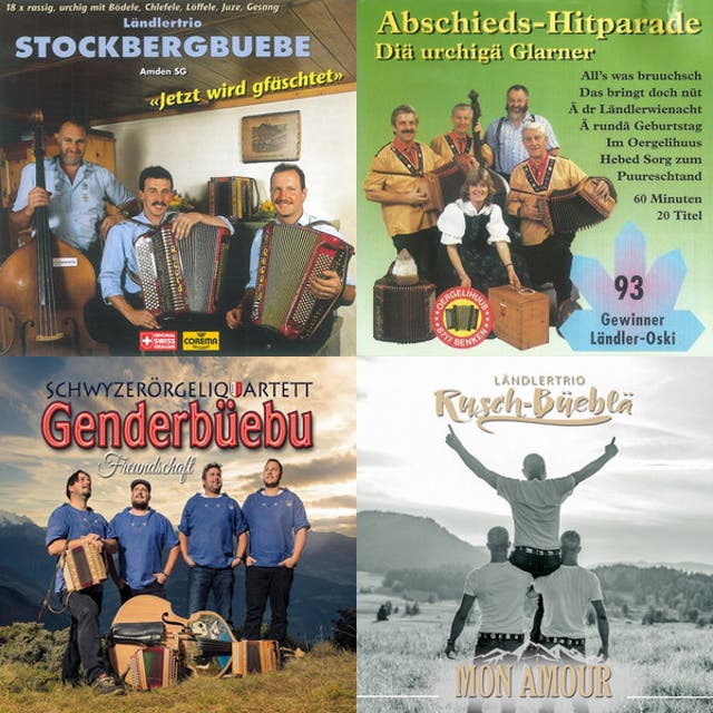 Typical ensembles are duos, trios, and quartets (often called Handorgelduo or Schwyzerörgeliquartett) featuring one or two Schwyzerörgeli, plus bass (double bass or electric bass), and sometimes clarinet or fiddle. The repertoire revolves around social dance forms such as Ländler, Schottisch, Walzer (waltz), Polka, and Märsche (marches). The sound is marked by bright, reedy timbre, parallel thirds and sixths in the right hand, energetic oom-pah bass patterns, and crisp bellows-driven articulation.