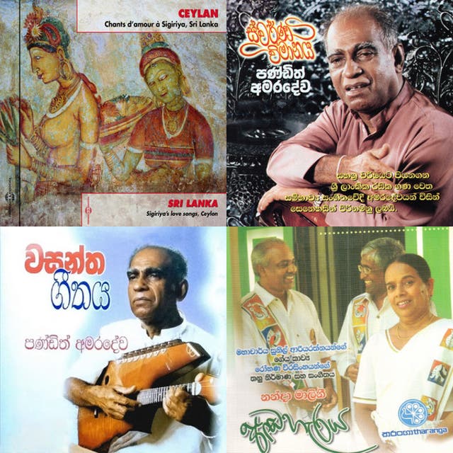 In the mid–20th century, collectors, educators, and composers documented rural repertoires and adapted them for radio and concert use. Figures such as W. B. Makuloluwa and Lionel Ranwala gathered village songs, while Sunil Santha, W. D. Amaradeva, and Ananda Samarakoon wove folk modalities and Sinhala prosody into art- and light-classical songs, shaping a modern folk-inspired song culture. New Year raban songs, work chants, and virindu poetry found renewed visibility via radio and state ensembles.